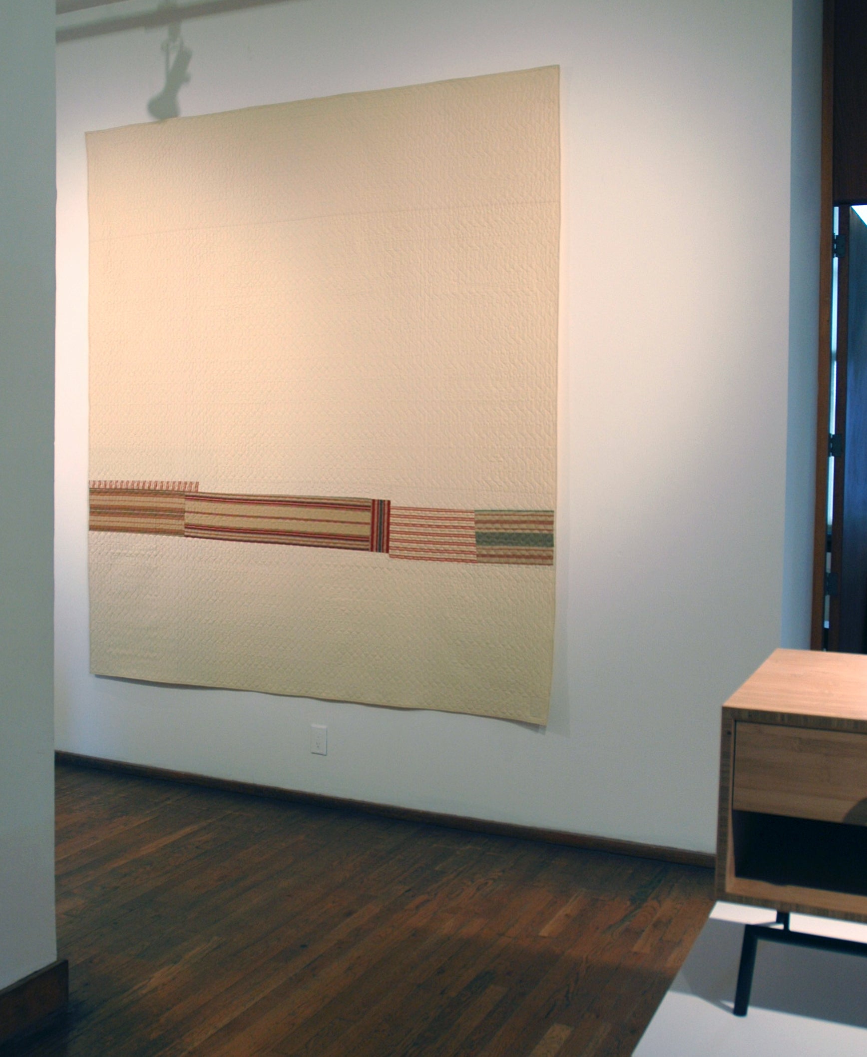 My rendition of a traditional "snake-in-the-grass" or "drunkard’s path" pattern looks great on the bed. Subtle shifts of color in the snakes impart an organic-modernist feel. An idea long on the drawing board, this pattern initially took shape when developed for my first how-to book, Denyse Schmidt Quilts (Chronicle, 2006).