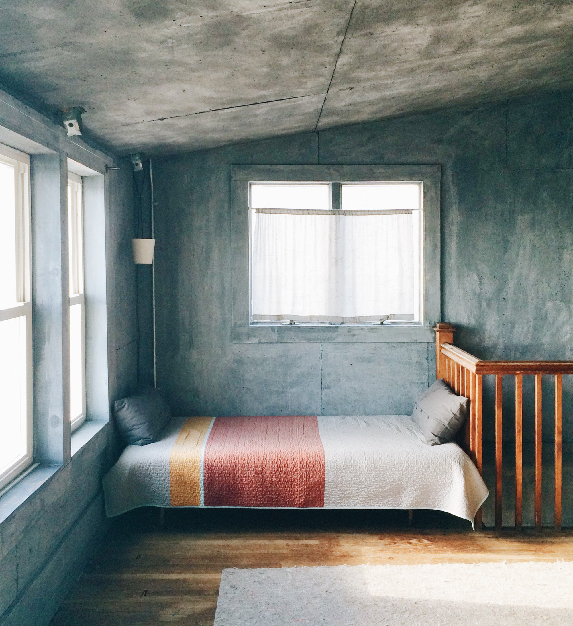 In 2009 I created fifteen bespoke quilts for a small boutique hotel on the ocean in Little Compton, Rhode Island. The designs, informed by the architects’ elegant, modern renovation of the historic seaside estate, captured the texture and feeling of summers past with seersucker and shirting-stripe cottons; and reflected the modern sensibility with spare architectural designs and fabrics with subtle, silvery threads.
